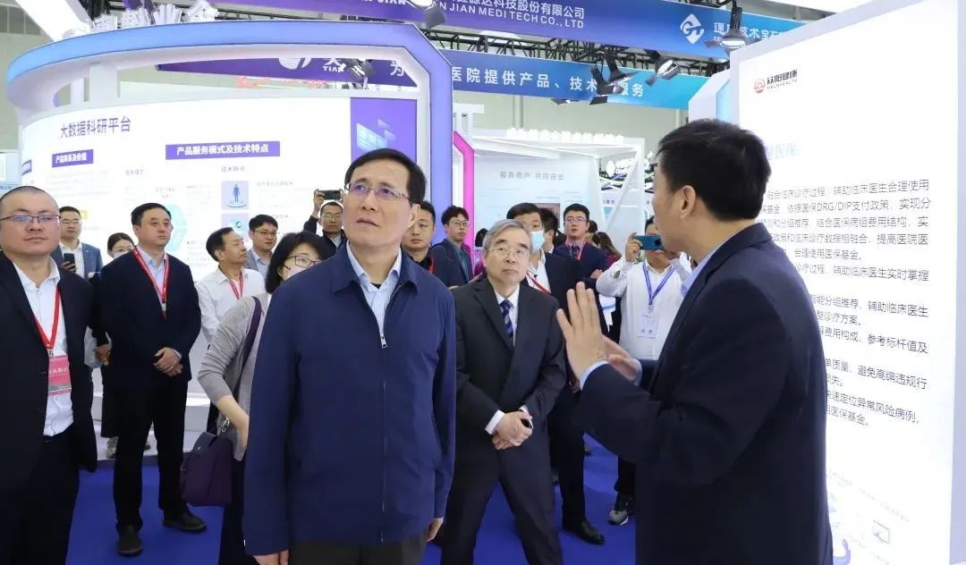 中国卫生信息与健康医疗大数据学会会长金小桃,国家卫生健康委规划发展与信息化司司长毛群安,国家卫生健康委统计信息中心党委书记、主任吴士勇,河南省卫生健康委员会党组成员、副主任周勇等领导莅临众阳展位视察指导,并对众阳云健康以数字化之力助力卫生健康高质量发展所做的创新实践及取得的成效给予高度评价和充分肯定。众阳健康CEO王方等陪同参观。