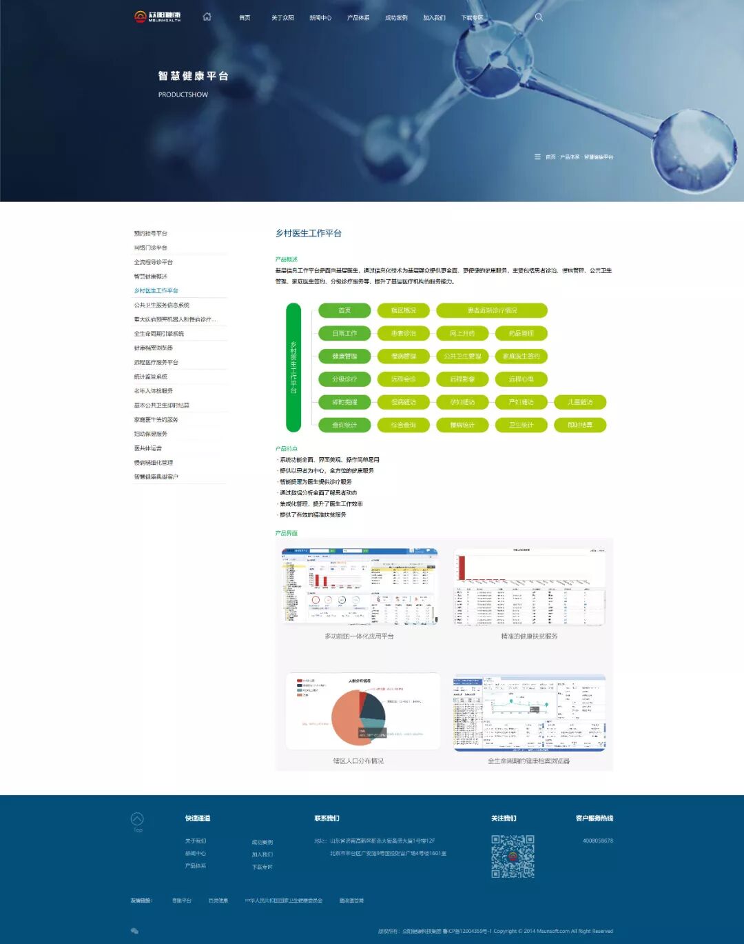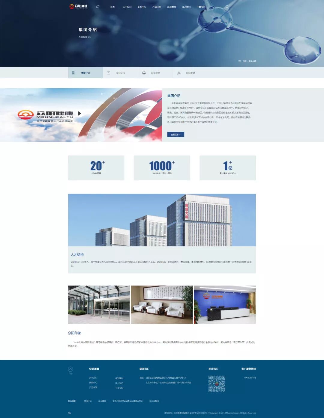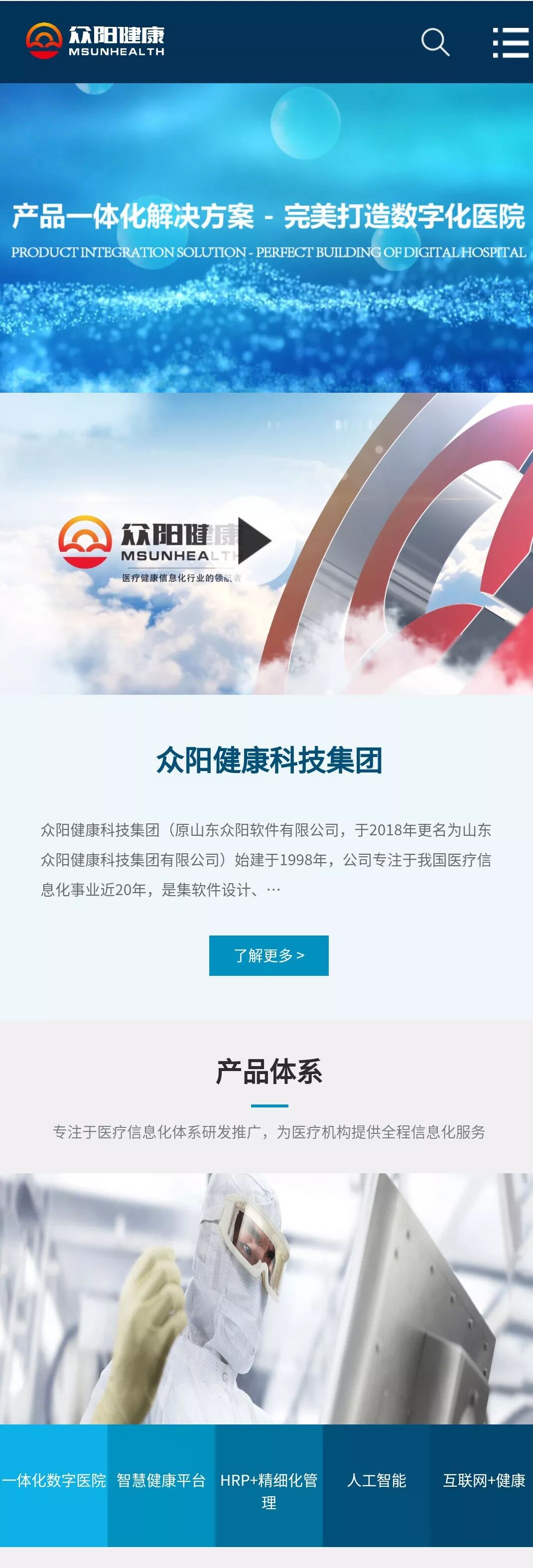众阳健康科技集团始建于1998年,是以医疗卫生信息化为主要业务领域的软件企业。面向医院,以全面系统的患者信息管理为核心,打造智慧型医院;面向健康,以全面系统的居民健康信息管理为核心,打造智慧健康。